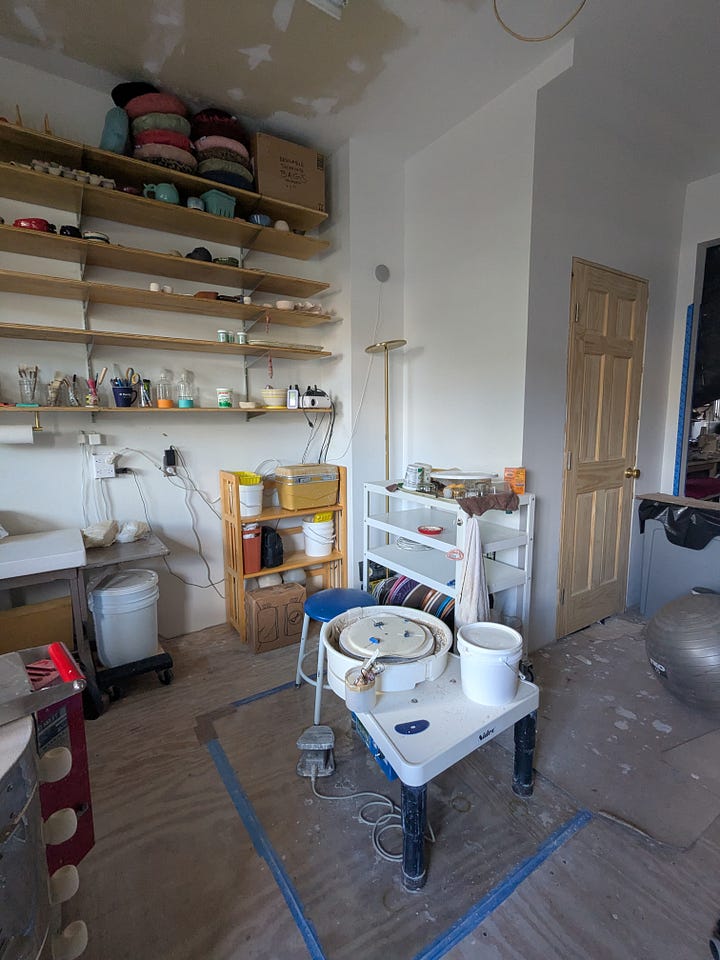And in workshop news, a carpenter friend of mine has been helping me out with some much needed renovation and repairs and I now have the pottery area closed off from the rest of the workshop making running the kiln so much more comfortable for the household (it gets so so hot). I’m hoping this will finally mean I can run overglazes through my kiln without stinking up the house. It’s all still a work in progress (like much of this house) but I am happy it’s getting done and I can’t wait to show off the finished result.