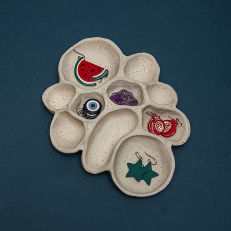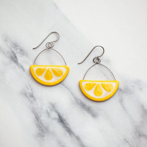 Even with being so busy, I have found some time to sneak in some new creations like cute mini sculptures I’m calling “blossoms”, egg wall art, organic ring dishes, donut ring dishes, 90s inspired shapes ring dishes, and lemon earrings. I have so many other ideas brewing once I get ahead of these orders!