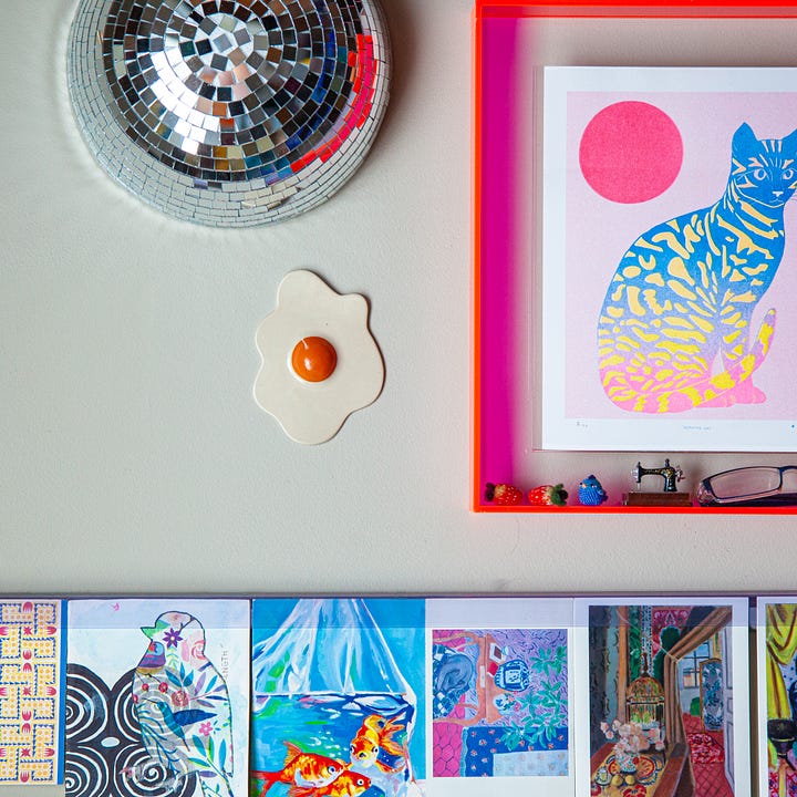 The eggs are designed like sunny side up or fried eggs and have a raised bright orange yolk. I fitted the back with a keyhole hanger (in clay) so it can be mounted on the wall with a nail or screw. Looks tasty enough to eat, but don’t forget it’s ceramic!